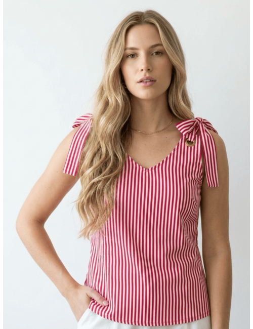 Bluzka na wiązanych ramiączkach, w modne pasy.