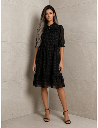 Szyfonowa sukienka Midi z wiązanym dekoltem